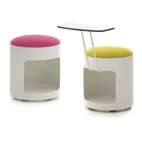 R2 is named after the wise, cute, and functional R2-D2 from Star Wars saga. Introducing color, mobility, and dynamism to all living spaces from homes to workspaces, waiting rooms, and social areas, R2 also provides a functional use with optional writing pad.